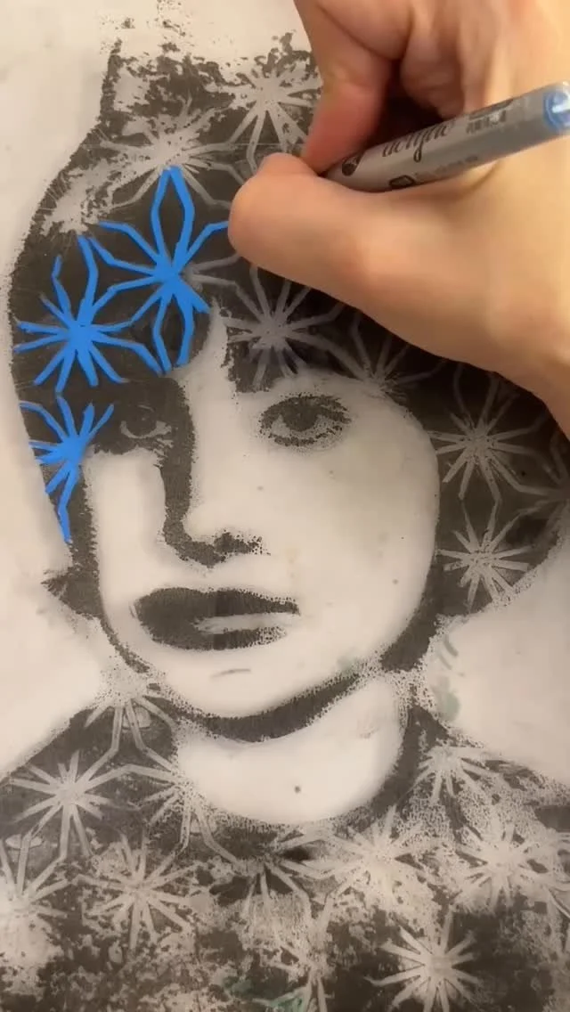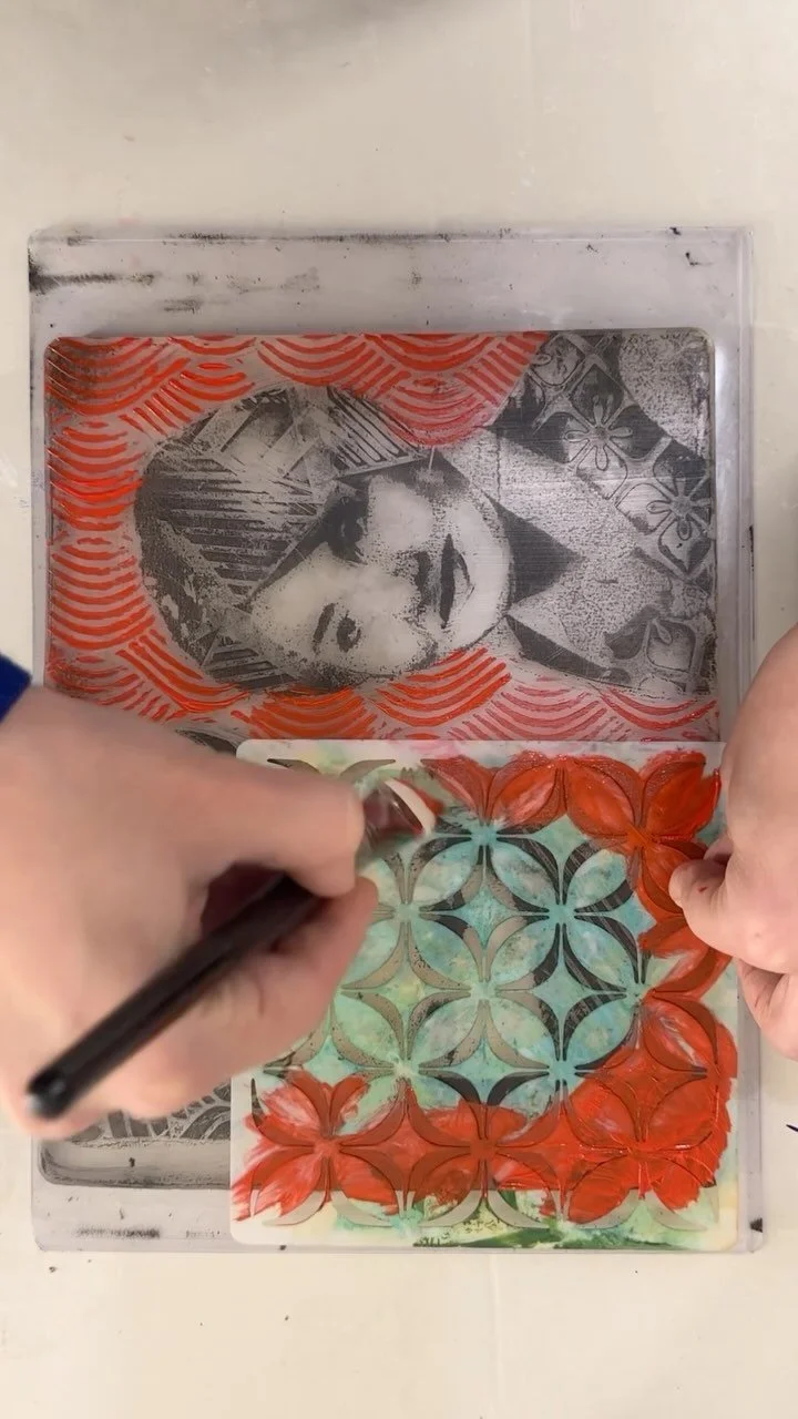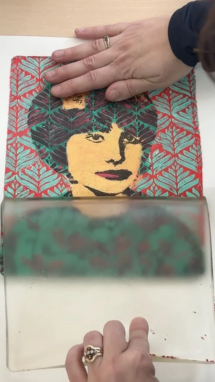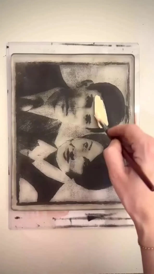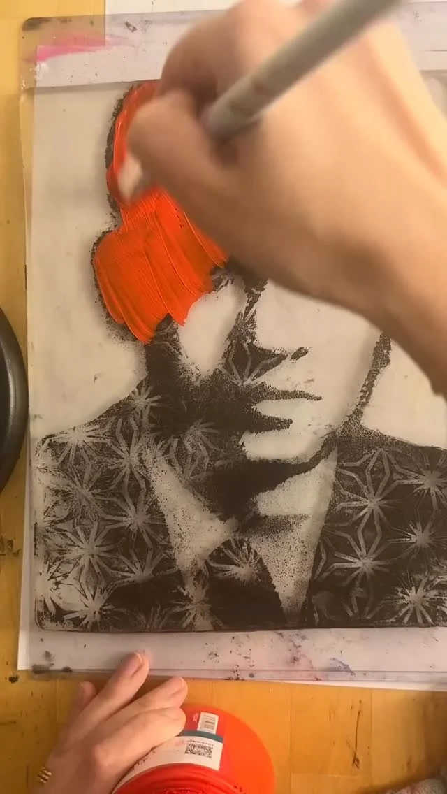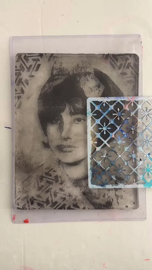 Gloria’s body of work primarily consists of printmaking and photographic compositions, often combining the two to create a distinctive visual style. She begins her creative process by photographing her surroundings, then digitally manipulates the images to develop compositions that serve as the basis for her prints. Gloria frequently works with monoprinting, a technique where only one unique print is produced rather than an edition of multiples. Her works are often variations on a central concept, each similar in theme but intentionally different. She uses repetition as a tool to evoke particular emotions and to communicate her intended message.