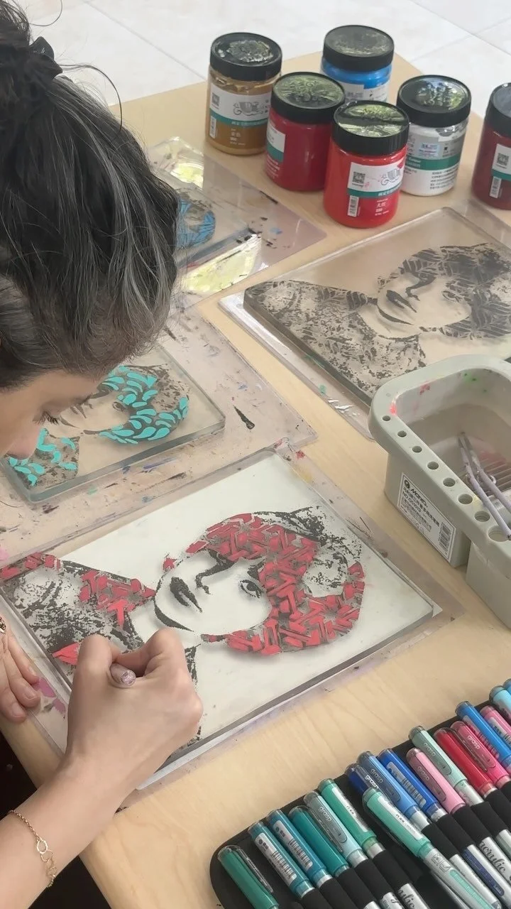 Gloria’s work explores the concept of identity, which she understands as the unique qualities that distinguish an individual or object from others. She views identity as something that belongs to a person or group, shaped by relationships and the environment. Her artwork delves into these ideas, examining how external influences help define personal identity. Gloria incorporates both serious and satirical elements into her work and enjoys experimenting with bold colors, textures, and repetition to amplify the visual and conceptual impact of her pieces.
