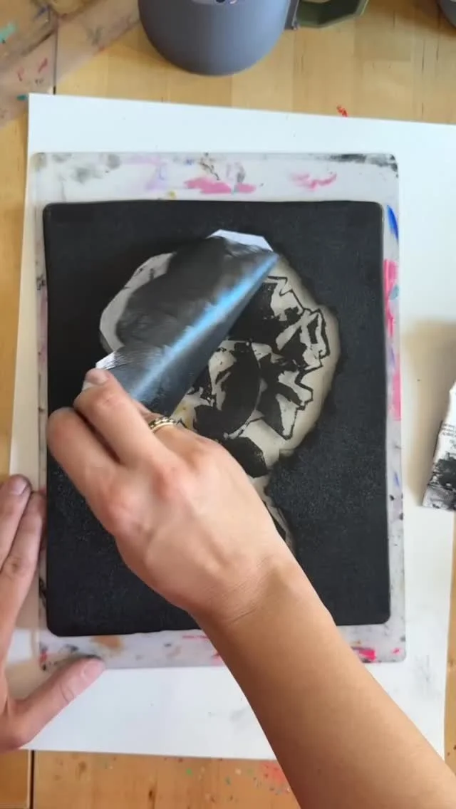 Gloria’s body of work primarily consists of printmaking and photographic compositions, often combining the two to create a distinctive visual style. She begins her creative process by photographing her surroundings, then digitally manipulates the images to develop compositions that serve as the basis for her prints. Gloria frequently works with monoprinting, a technique where only one unique print is produced rather than an edition of multiples. Her works are often variations on a central concept, each similar in theme but intentionally different. She uses repetition as a tool to evoke particular emotions and to communicate her intended message.